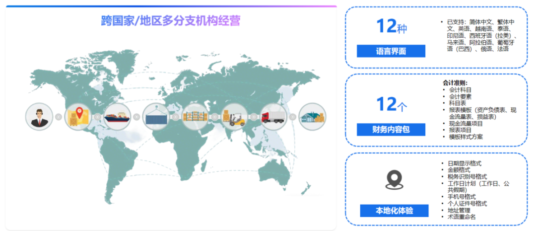 正因如此,企业亟需一个真正具备全球化基因的AI数字底座,既能拉通总部与海外分支的管理视野,又能深耕每一个本地市场实现合规落地。这个底座必须具备"全球化基因",而非简单的系统翻译或功能堆砌;更需内嵌AI能力,让智能化贯穿财税分析、供应链协同、数据流转与风险预警的全链路。唯有如此,企业才能在复杂多变的全球市场中,以敏捷应对不确定性,以韧性穿越新周期。